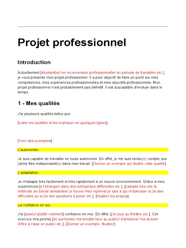 www.scribd.com Exemple projet professionnel psychologie