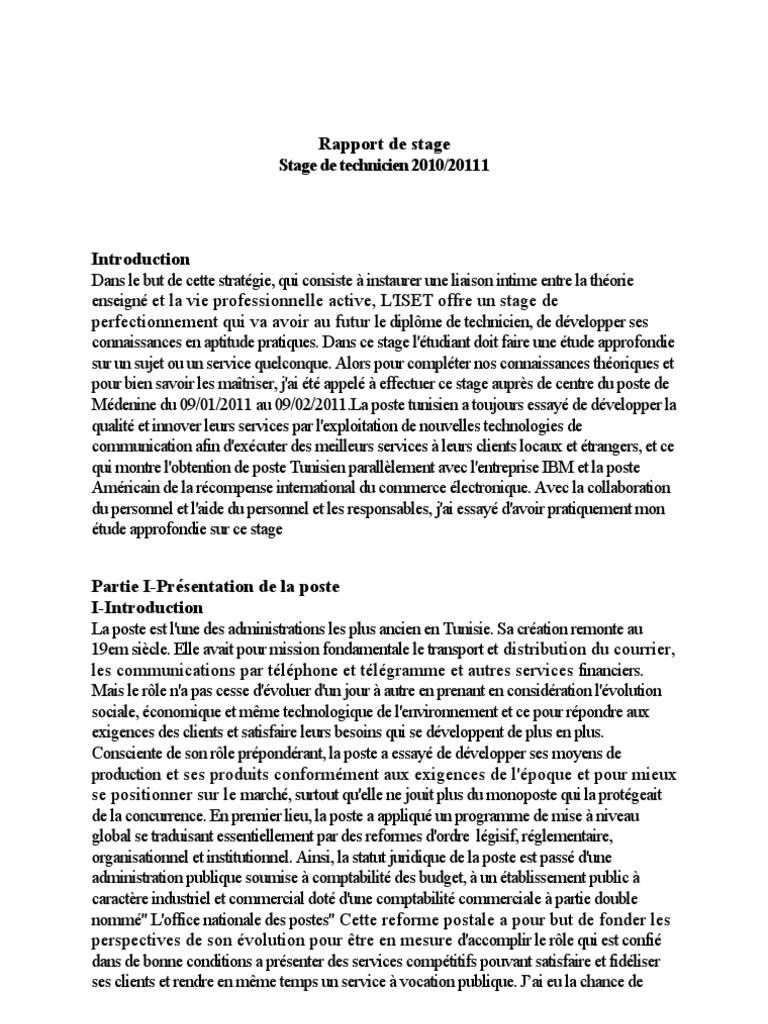 Rapport de stage poste tunisienne informatique poste essai - fr.scribd.com
